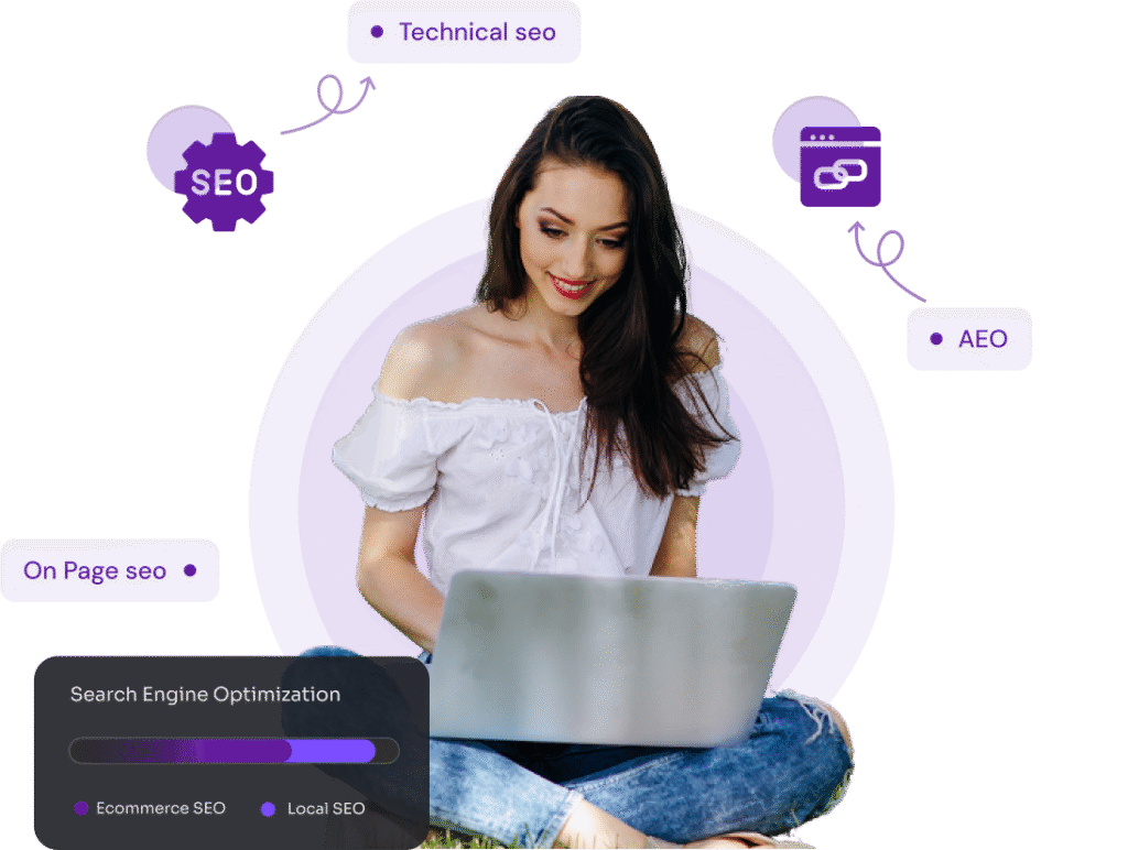 SEO (Search Engine Optimization) means improving your website so people can find it on search engines like Google. When people search for your product or service, you want your website to appear at the top.